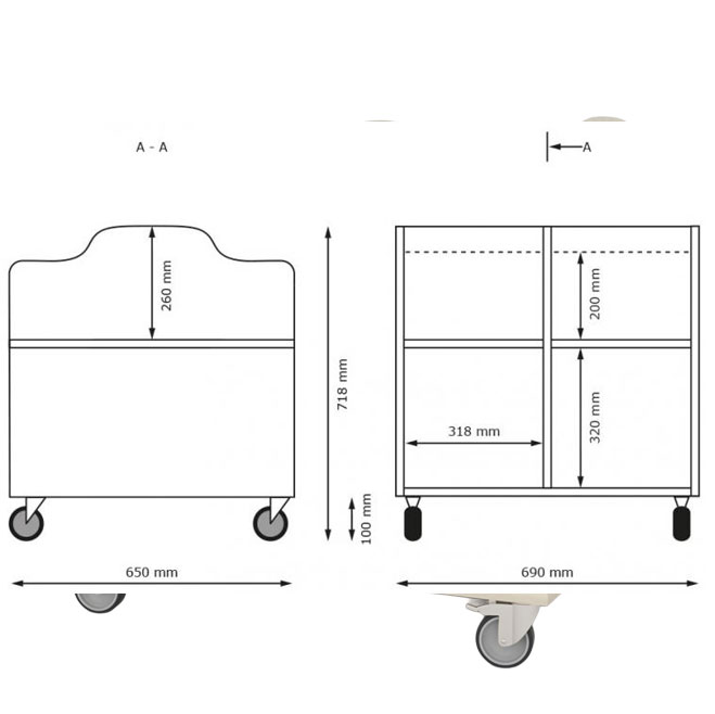Mål: Høyde: 750mm. Bredde: 690 mm. Dybde: 650 mm.