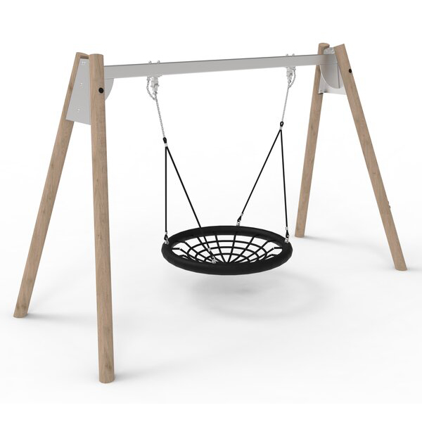 Denne stålhusken kombinerer en solid stålbjelke og naturlige robinia-stolper, og tilbyr både holdbarhet og et naturlig utseende. Fugleredet gir plass til grupper av barn å svinge samtidig, noe som fremmer sosial interaksjon, balanse og motoriske ferdigheter.